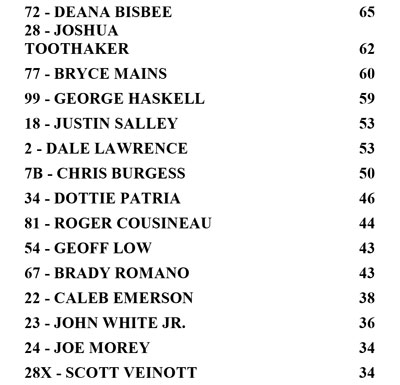 NEW POINT STRUCTURE FOR WEEKLY RACING:
